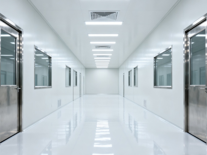 該芯片生產(chǎn)潔凈車間凈化裝修工程,專為芯片的高精度制造打造。車間采用高等級潔凈設(shè)計,墻面、地面為無縫抗菌材質(zhì),搭配均勻明亮的LED照明系統(tǒng),營造出一塵不染的生產(chǎn)環(huán)境。